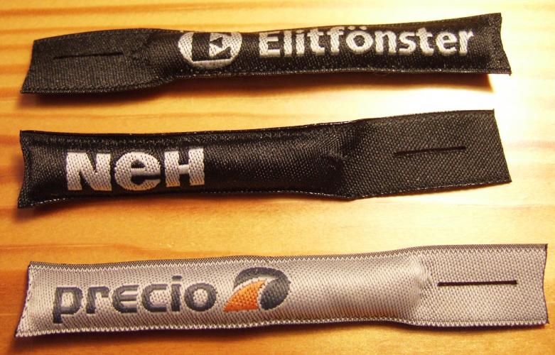 Vävda/broderade märken kan ofta vara det bästa sättet att applicera på kläder.